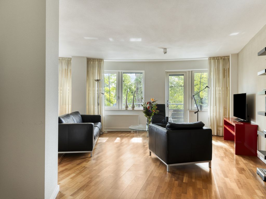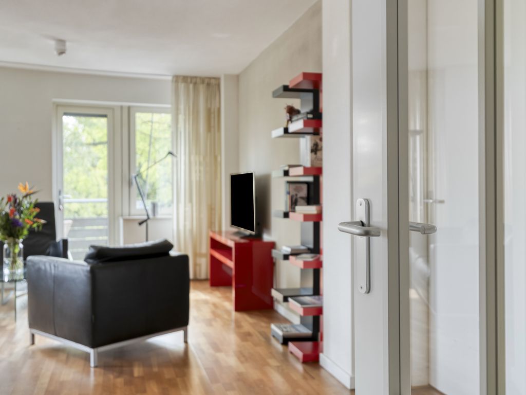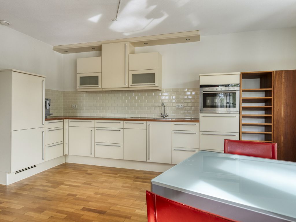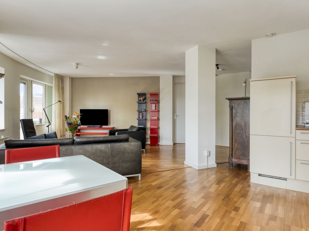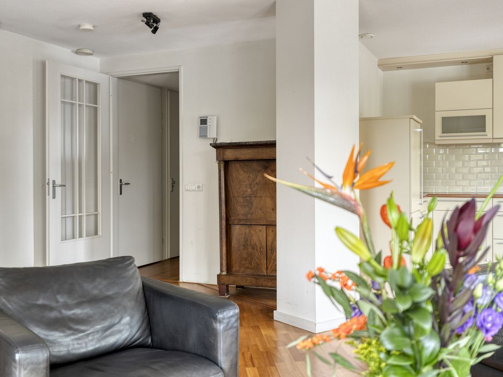 Vanuit de hal bereikt u de lichte en ruime woonkamer. Deze vormt het hart van de woning. Dankzij de grote raampartijen geniet u hier van een prettige lichtinval en een schitterend uitzicht op groen maar ook op de levendigheid van de binnestad. De open keuken is netjes uitgevoerd en uitgerust met alle gemakken: een vaatwasser, combi-oven, keramische 4-pits kookplaat en een koel-/vriescombinatie.