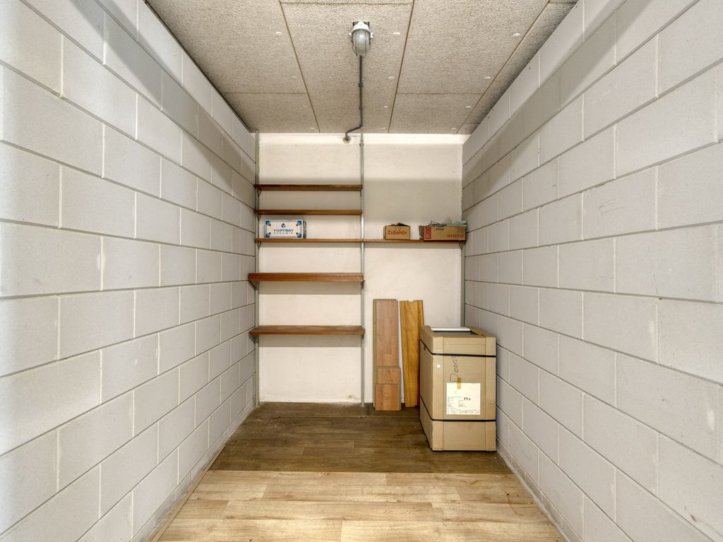 Dit appartement beschikt over een eigen parkeerplaats op een afgesloten parkeerterrein. Onder het gebouw is een privé-berging waar u uw eigen fietsen kunt plaatsen. Eveneens is er buiten een overdekte fietsenstalling aanwezig.
