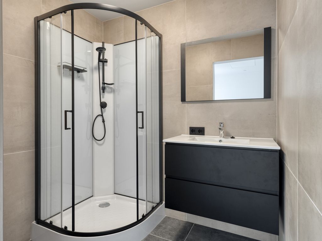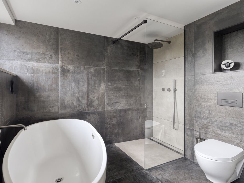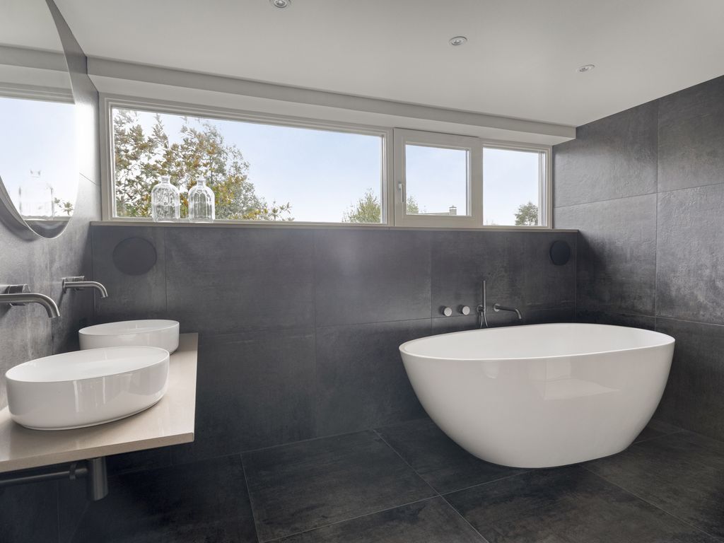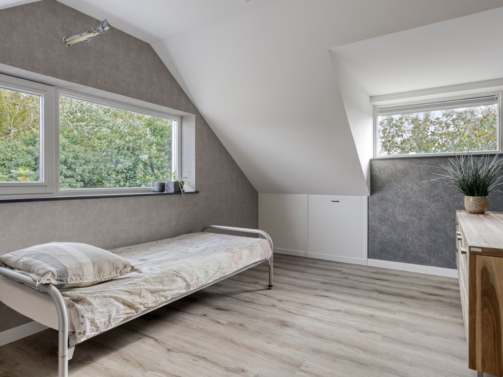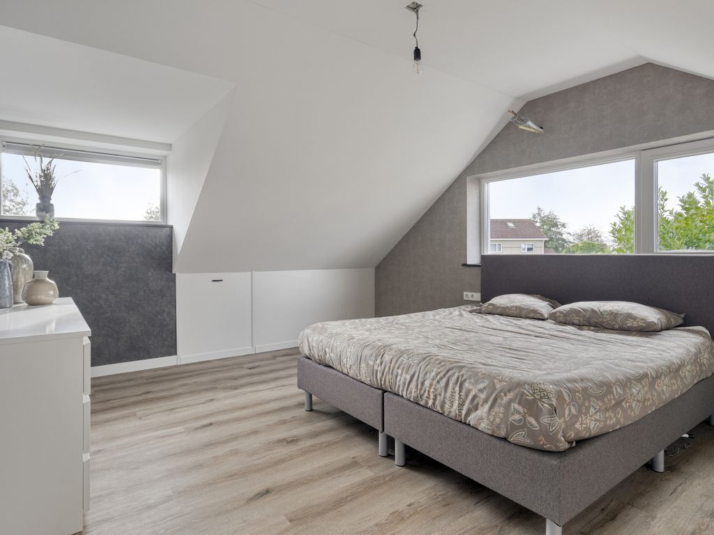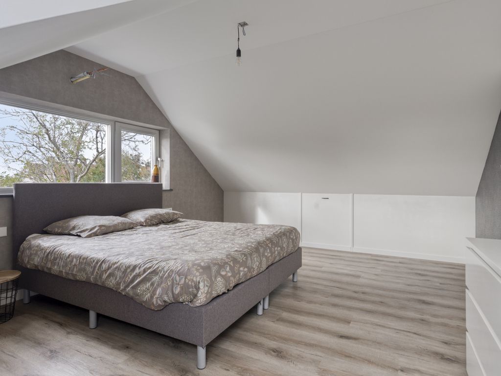 Via de vaste trap bereikt u de verdieping met twee ruime slaapkamers, beide voorzien van grote ramen in de zijgevels en in de dakkapel en bergruimte onder de knieschotten. De luxe badkamer in de dakkapel is voorzien van eenvrijstaand bad, inloopdouche, dubbele wastafel en toilet. De badkamer is tevens voorzien van vloerverwarming.