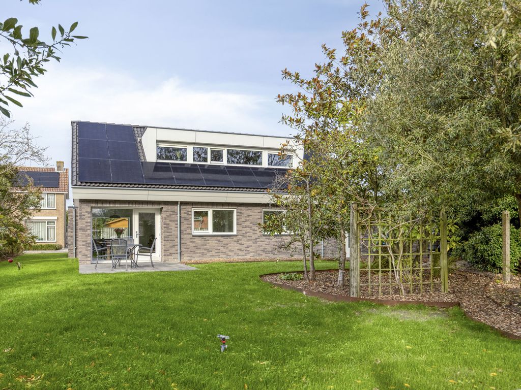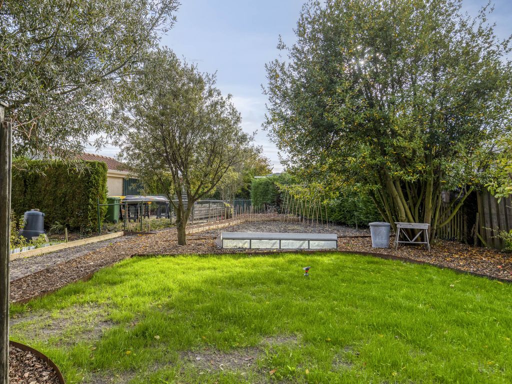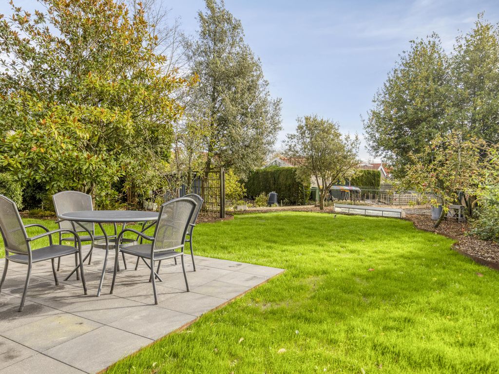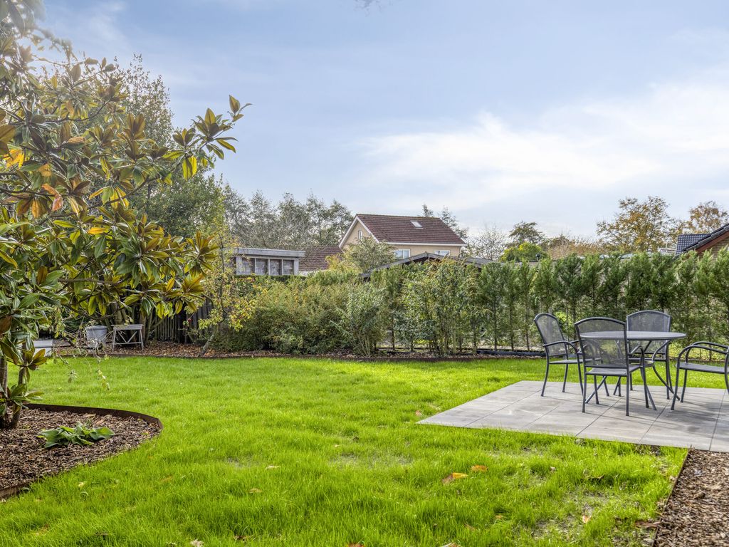 De woning staat op een royaal perceel met een nieuw ingezaaid gazon. De oprit aan de voorzijde biedt ruimte voor meerdere auto's en kan naar wens verder worden afgewerkt. Achter de woning ligt een terras, omringd door volwassen bomen en gazon. De diepe achtertuin van bijna 40 meter biedt volop mogelijkheden voor een moestuin, schuur of veranda.