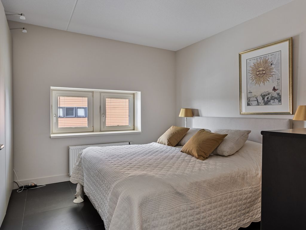 De twee slaapkamers van ca. 13 en ca. 15 m² groot bevinden zich links van de gang. De ouderslaapkamer heeft aan één zijde een luxe inbouwkast met hang-/legindeling en diverse laden, die kamerbreed is en reikend tot aan het plafond. De tweede slaapkamer grenst aan het balkon aan de zuidwestzijde. Deze slaapkamer leent zich ook uitstekend als kantoor of hobbyruimte. Via een deur kunt u het heerlijke balkon van ca. 19 m² bereiken, waarop u al vroeg in de ochtend kunt genieten van de ochtendzon. Afgelopen jaar zijn daar twee luxe, stormbestendige zonnescreens aangebracht, die u op afstand kunt bedienen. U kunt dan, in de schaduw en/of uit de wind, nog langer genieten van uw balkon.