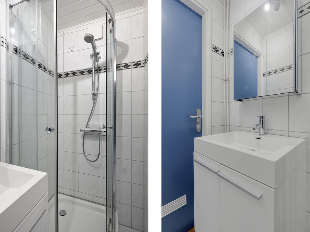 De badkamer is enkele jaren geleden gemoderniseerd en uitgevoerd met een halfronde douchecabine met glazen schuifdeuren en een luxe wastafel met spiegelkast. Het toilet is separaat en bereikbaar vanuit de hal.